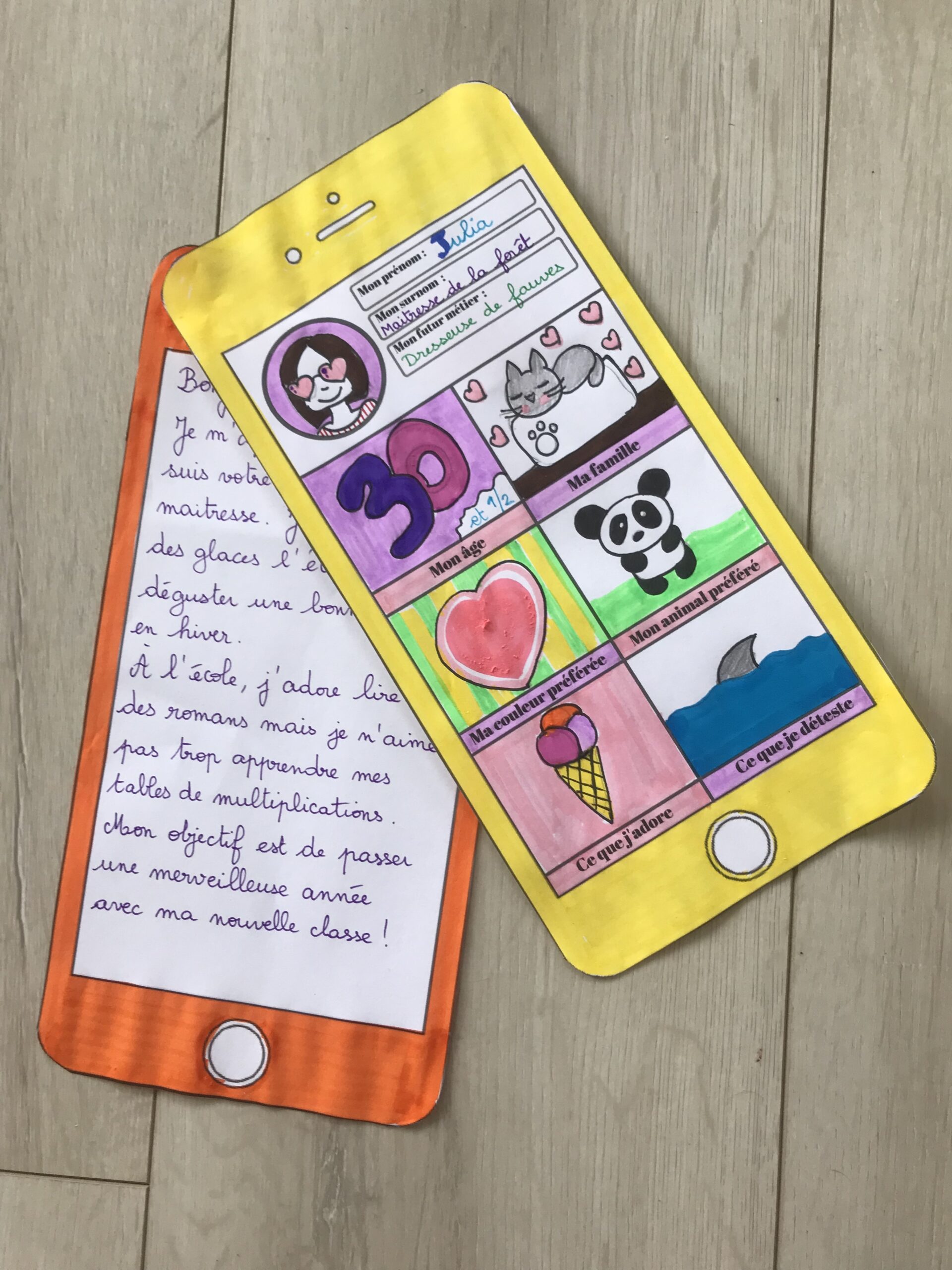 Chaque année, je propose aux élèves une petite activité d’arts le premier jour pour qu’ils m’indiquent leurs goûts. L’année dernière j’avais utilisé le lapbook de rentrée (je vous remets l’article ici). Cette année, j’ai farfouillé sur Pinterest et encore une fois, les enseignantes américaines ont tapé dans le mille ! Je me mets à la page 2019 et je vais donc proposer une activité sous forme de téléphone portable (pour ne pas citer de marque ahah).