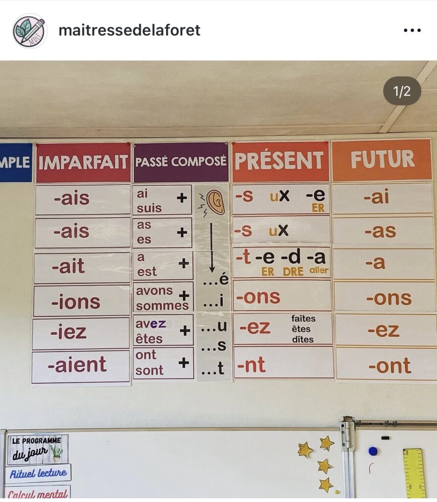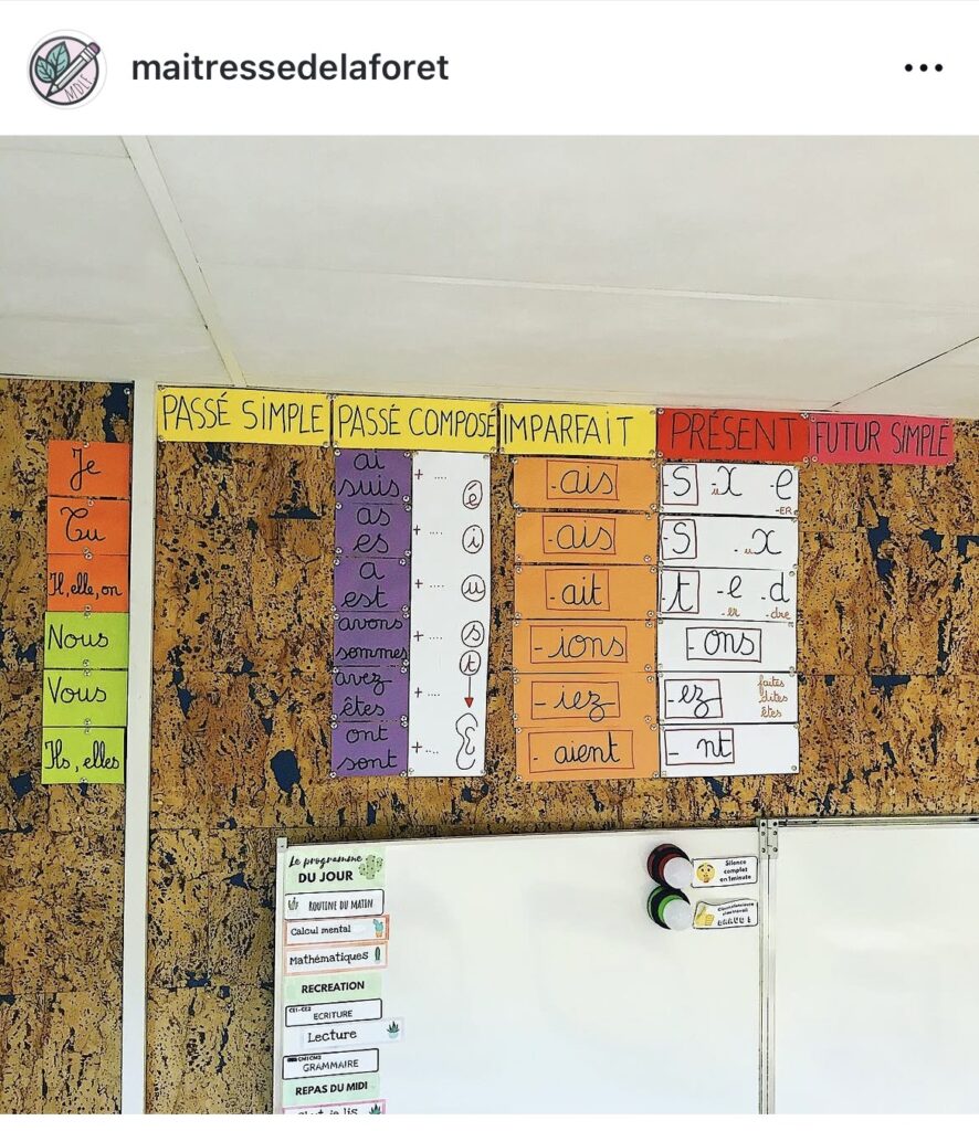 Il y a maintenant 10 ans, à l’époque de la fameuse école de la forêt, je démarrais en triple niveau. Trois niveaux, peu de place sur les murs et une formation qui allait transformer ma pratique de classe à tout jamais. Naissait alors le fameux affichage de conjugaison, qui a traversé les régions, les murs de ma classe, et que je prends toujours beaucoup de plaisir à voir fleurir dans vos classes.
