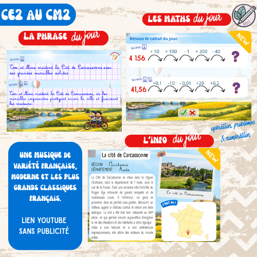 - Les fiches « maths du jour » (3 niveaux) à distribuer