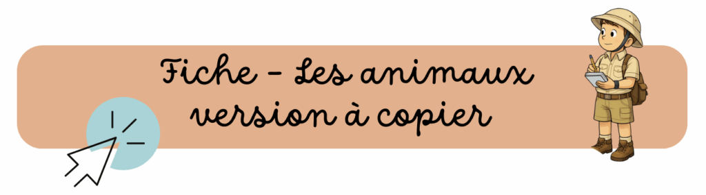 AJOUT : Si vous souhaitez faire copier le petit texte sur la fiche « animal », voici une version modifiée avec plus d’espace de copie. N’oubliez pas de l’imprimer en 4 exemplaires par élève.